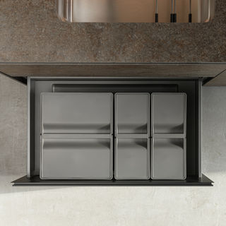 Для Мрії ми обрали італійські відра Golinucci та продумали дві конфігурації. Стандартна (висота 277 мм) включає три відра (2х11л + 26л) для зручного сортування. Зменшена (209 мм) розроблена для сумісності з подрібнювачем (ISE) і має об'єм 2х9л + 20л.
