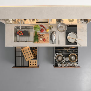 Але це єдиний інтегрований модуль. На тій самій пластиковій платформі Golinucci є відсік для сміттєвих пакетів та два контейнери для овочів (картоплі, цибулі) загальним об'ємом до 30 кг, з перфорованими дерев'яними кришками.